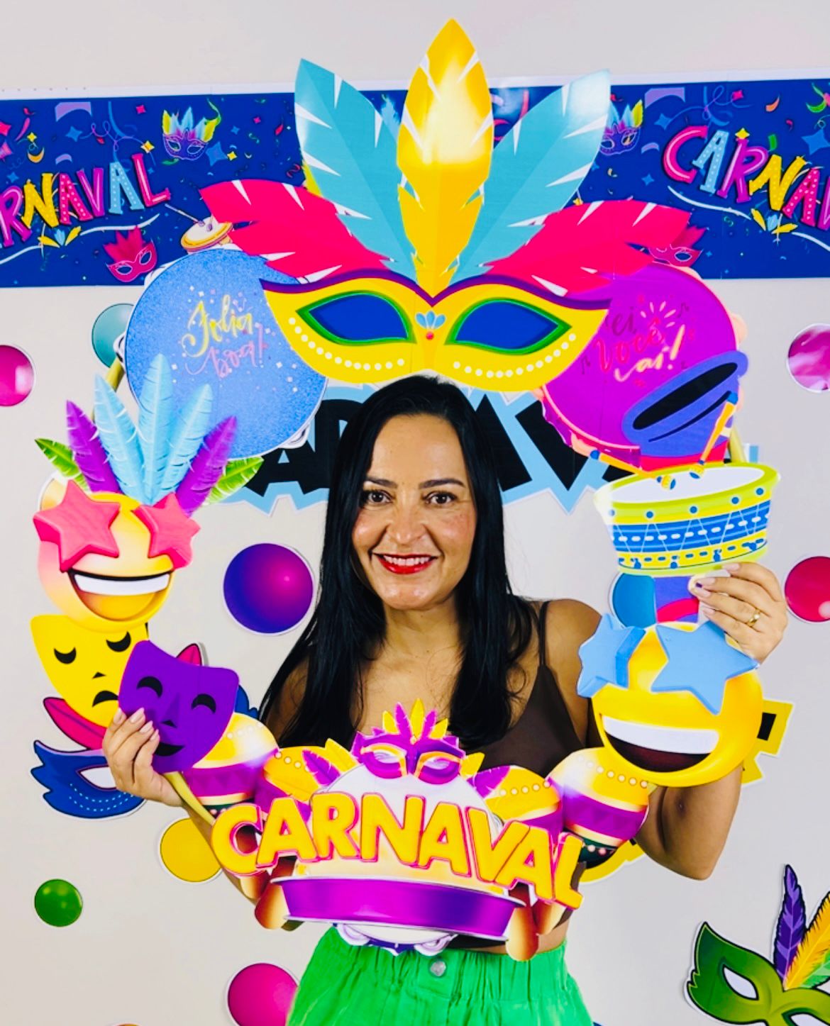A moldura para Bambolê Carnaval é perfeito para registros fotográficos alegres e coloridos, deixando sua festa ainda mais especial.