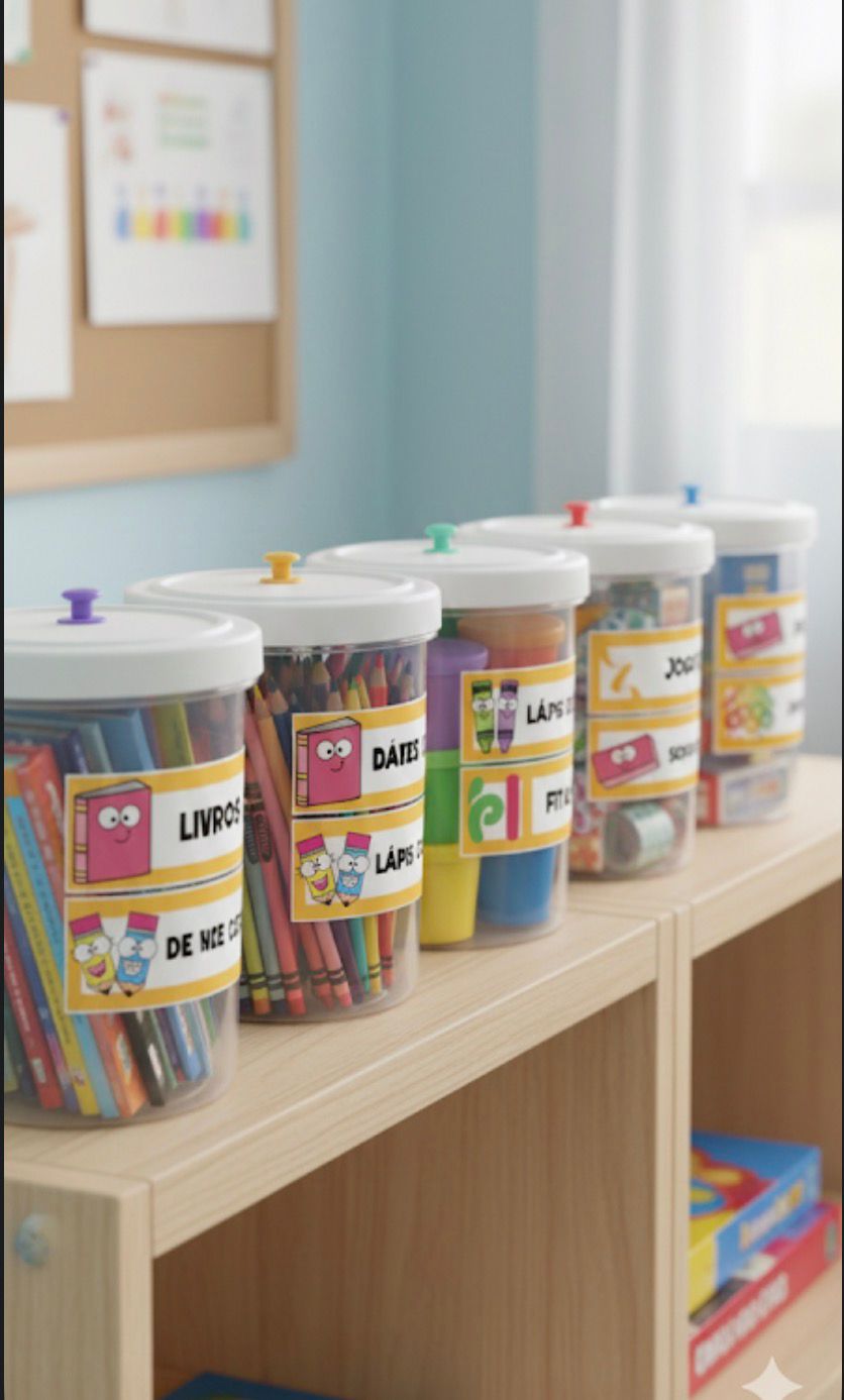 ✨ Etiquetas de organização para potes e materiais (tesouras, réguas, lápis, pincéis, colas, cadernos e muito mais)