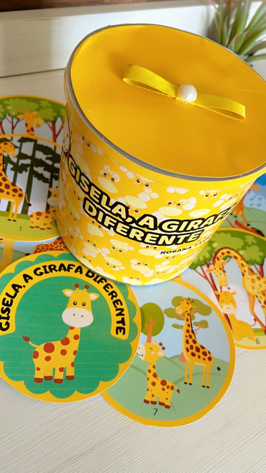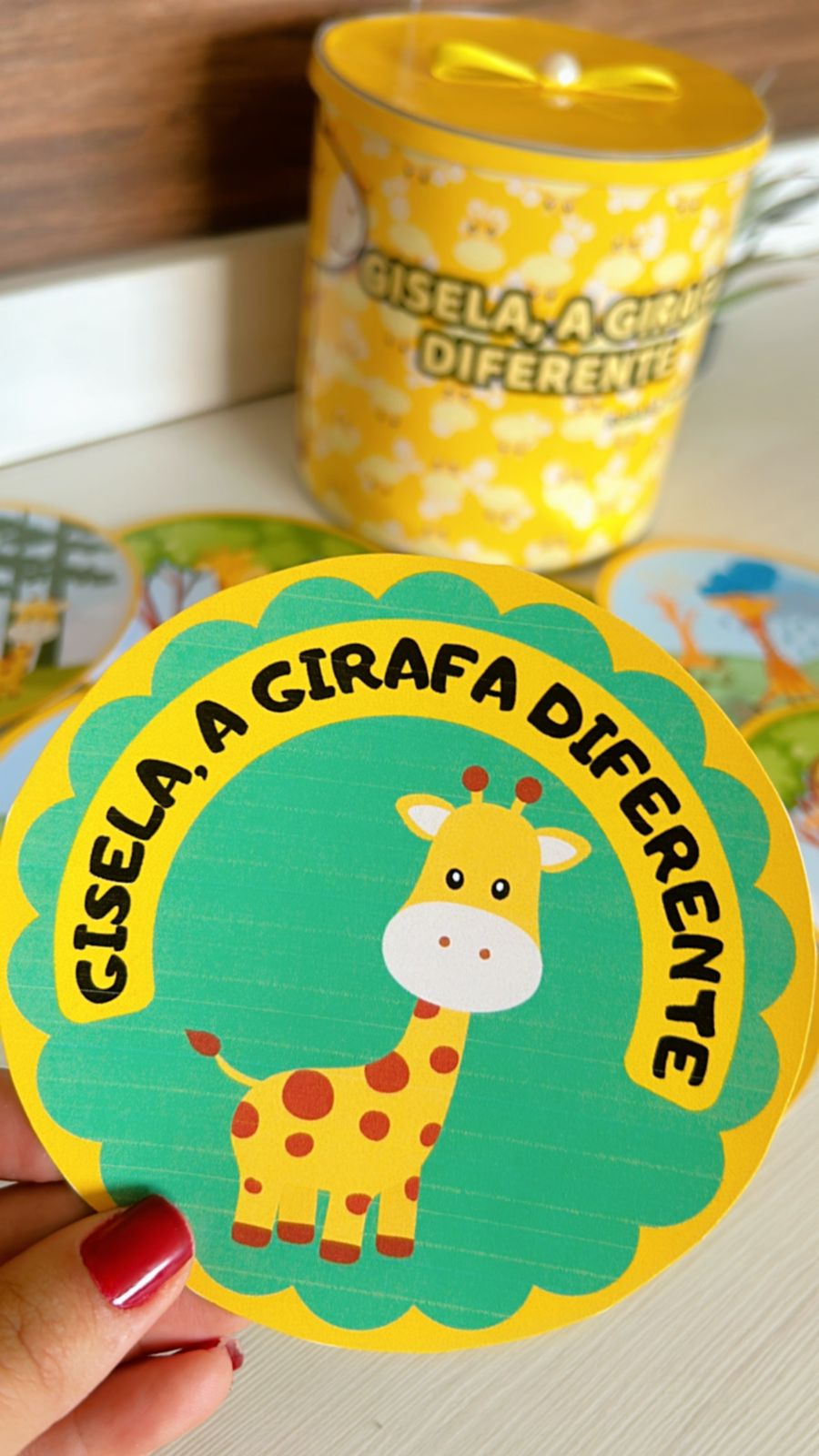 No arquivo vem a arte para a lata de 400 e 800gr, as fichas com as imagens e a história escrita para colar atrás.