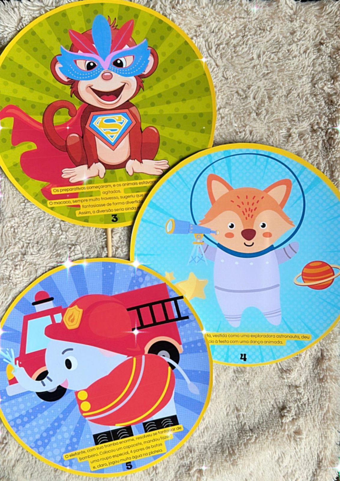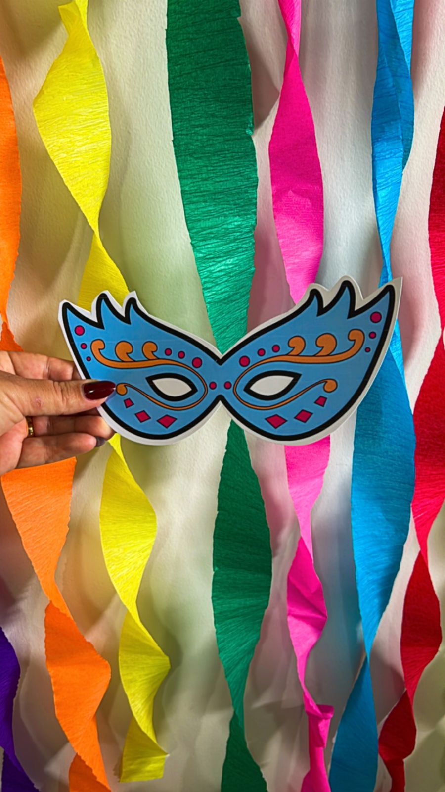Máscaras, plaquinhas, óculos, coroa e gravatas para animar a galera.🤩