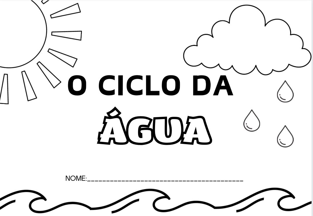 Caderno de atividade o ciclo da água com borda e sem borda – Editável no CANVA.