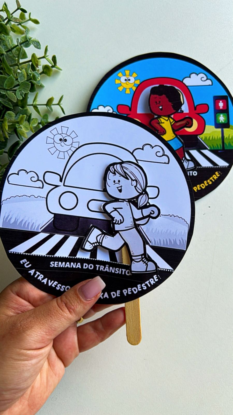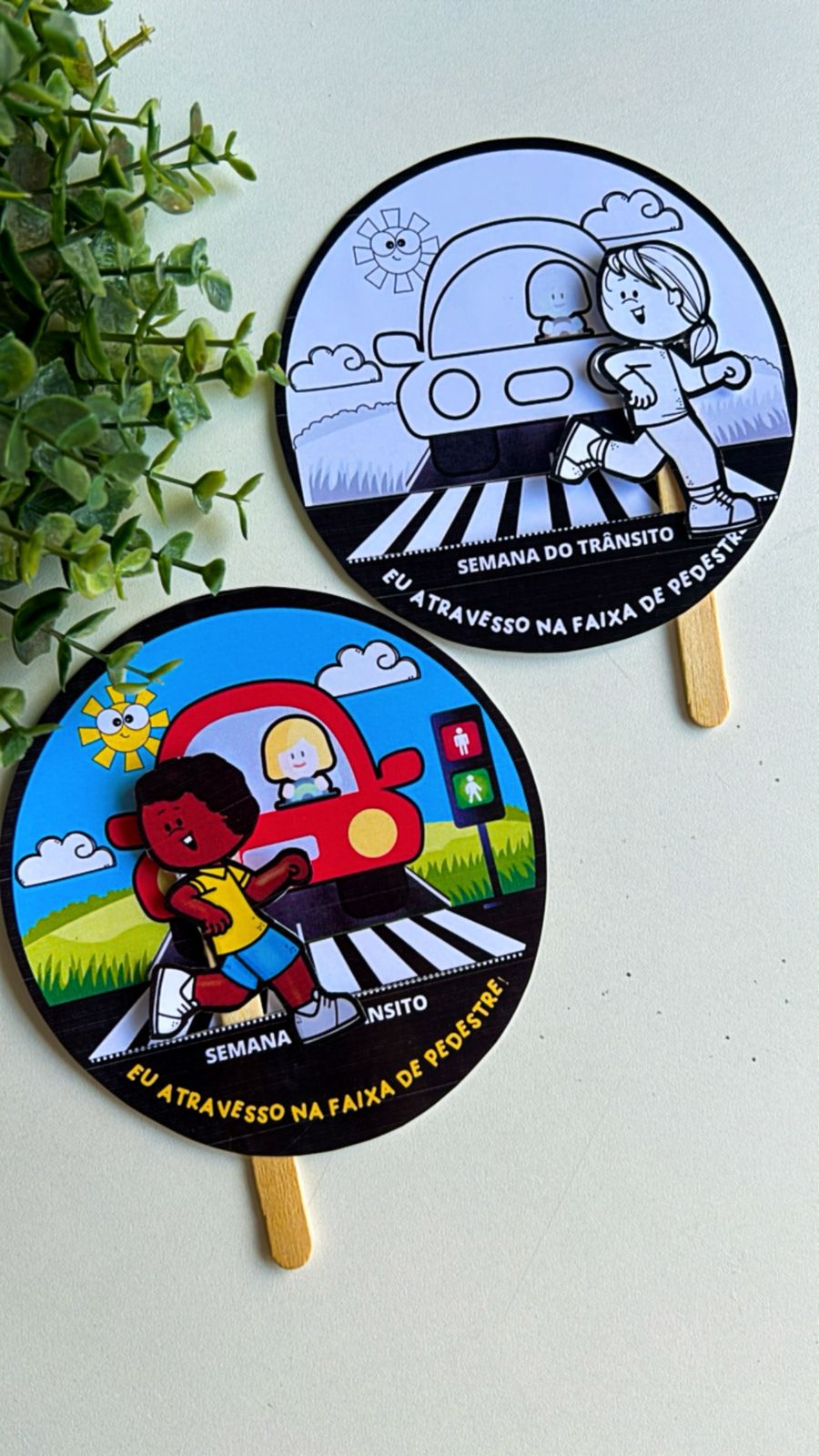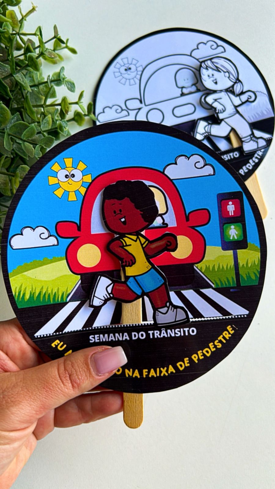 Linda lembrancinha semana do trânsito para colorir e colorido.