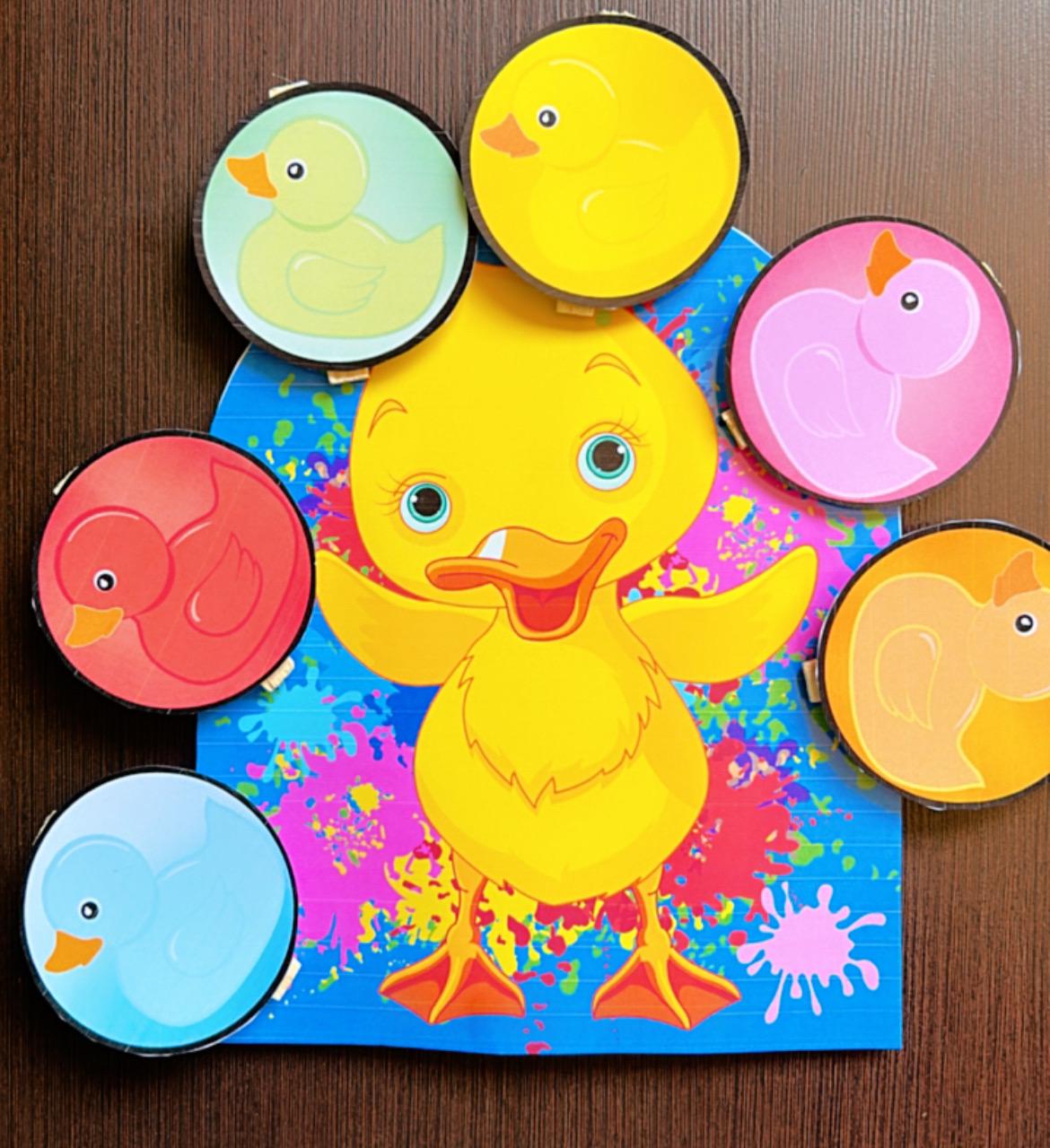 Vem com a arte e a letra da música para confeccionar a luva e a imagem dos 06 patinhos.