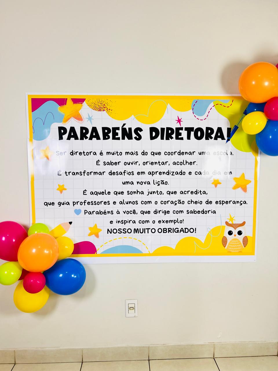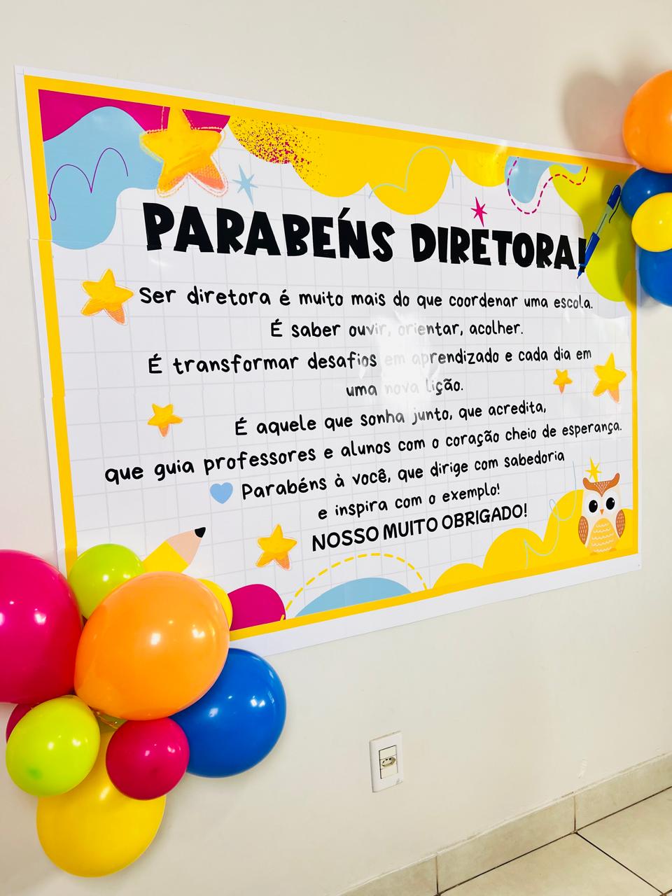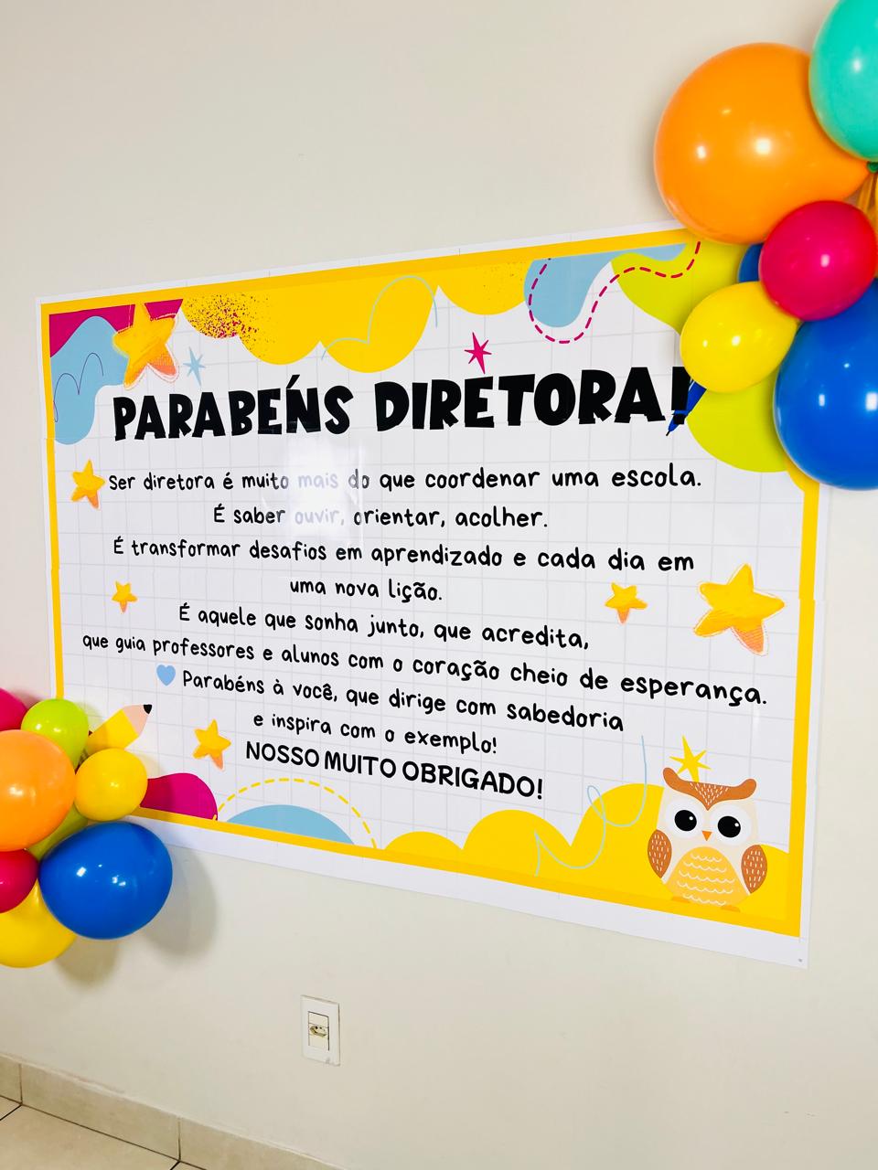 Nosso painel Dia do Diretor traz uma mensagem emocionante e cheia de gratidão, perfeita para decorar a escola e homenagear quem lidera com amor e sabedoria.