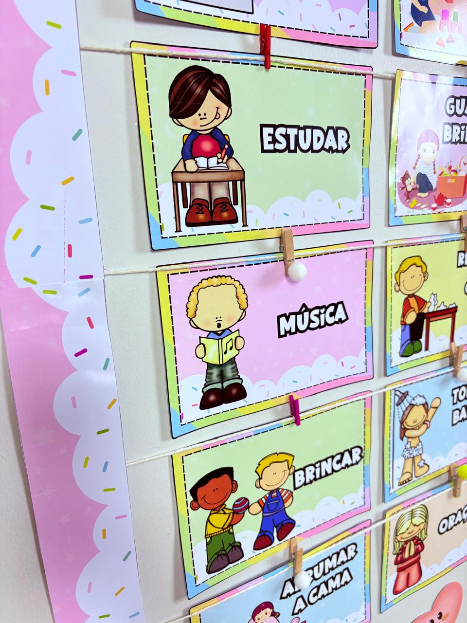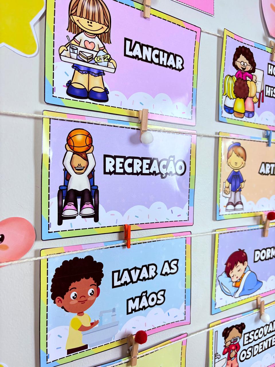 Perfeito para trabalhar noção de tempo, organização e combinados da turma de forma lúdica e visual.