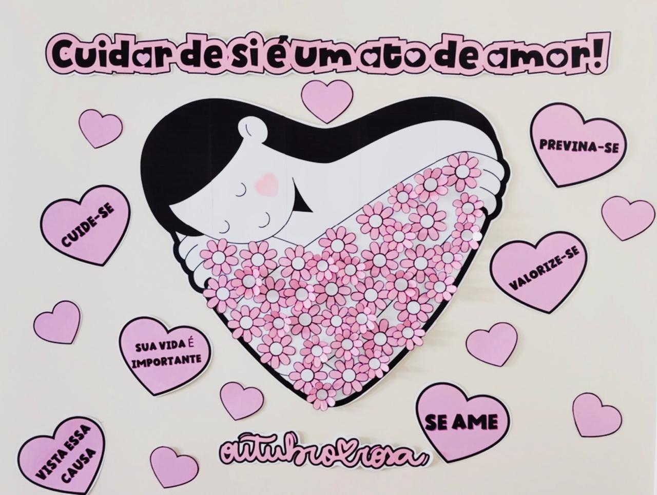 O nosso Painel outubro Rosa: “Cuidar de si é um ato de amor!” enfatiza a importância do autocuidado.