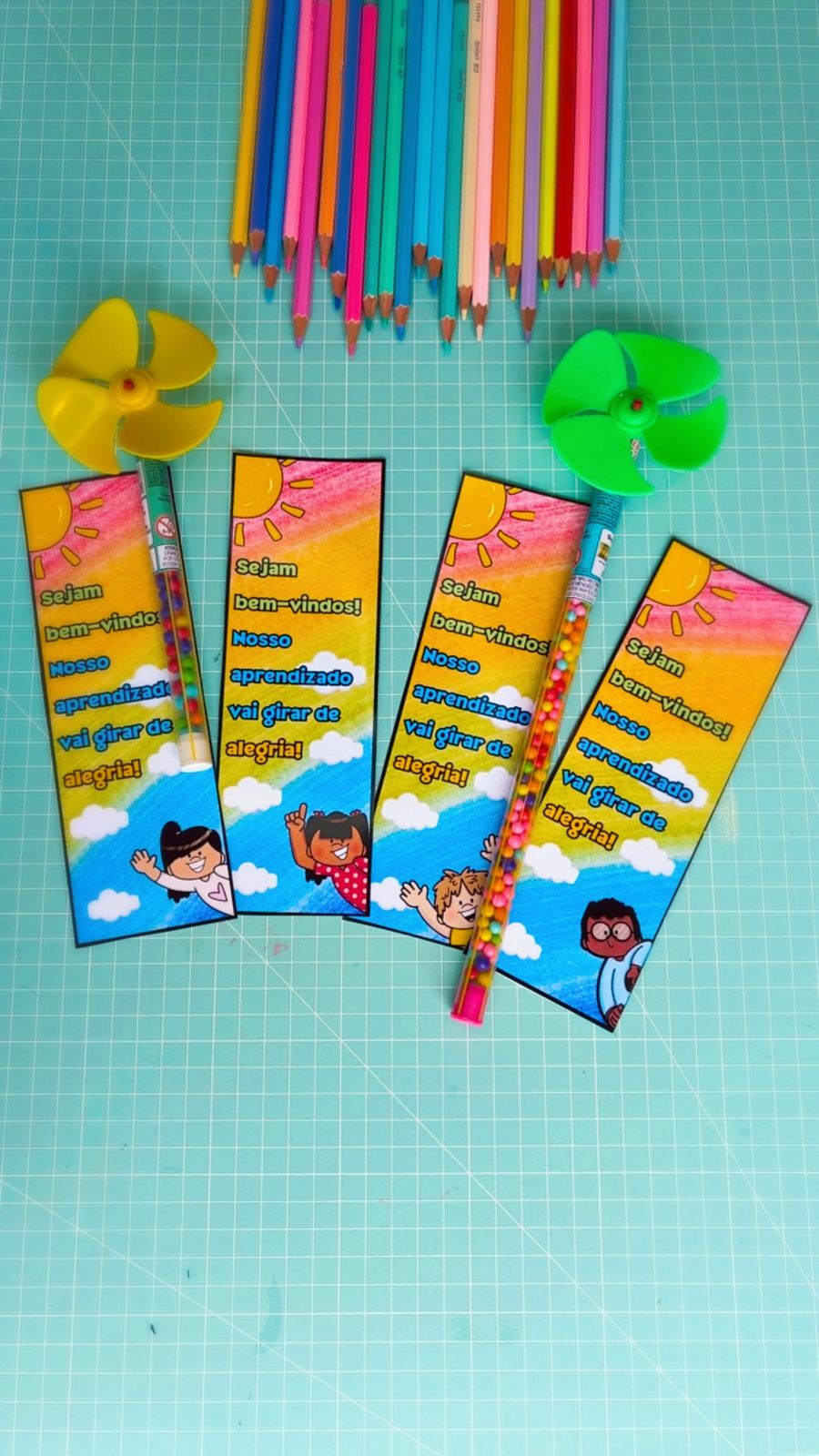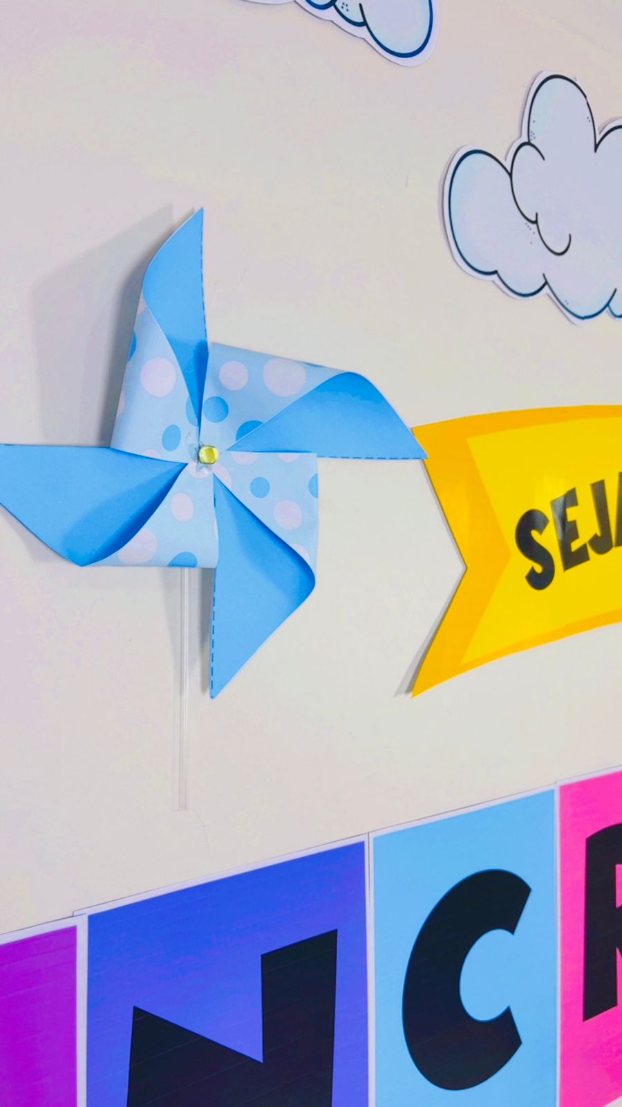 Os cataventos simbolizam novos começos, alegria e aprendizado em movimento, tornando o ambiente mais lúdico e convidativo para as crianças. 💨✨