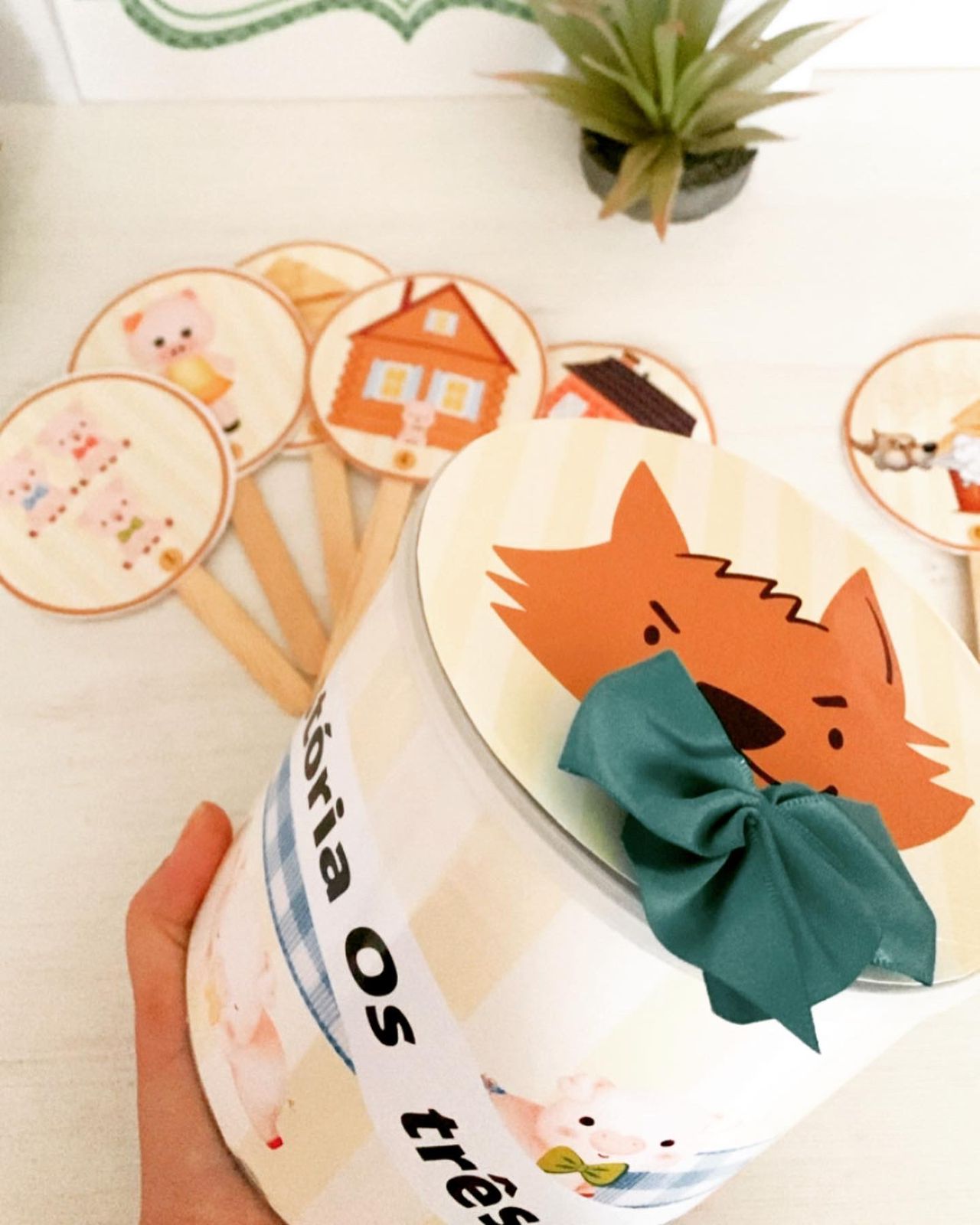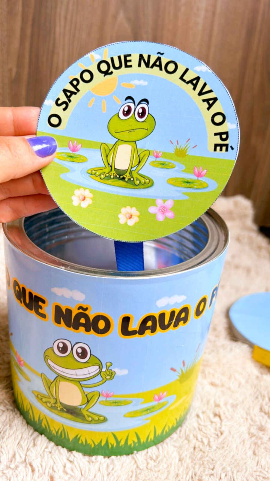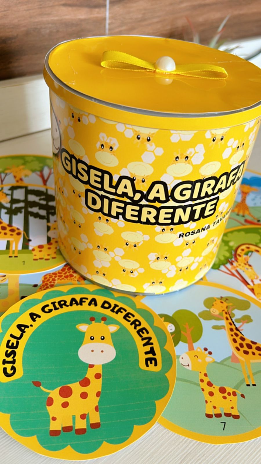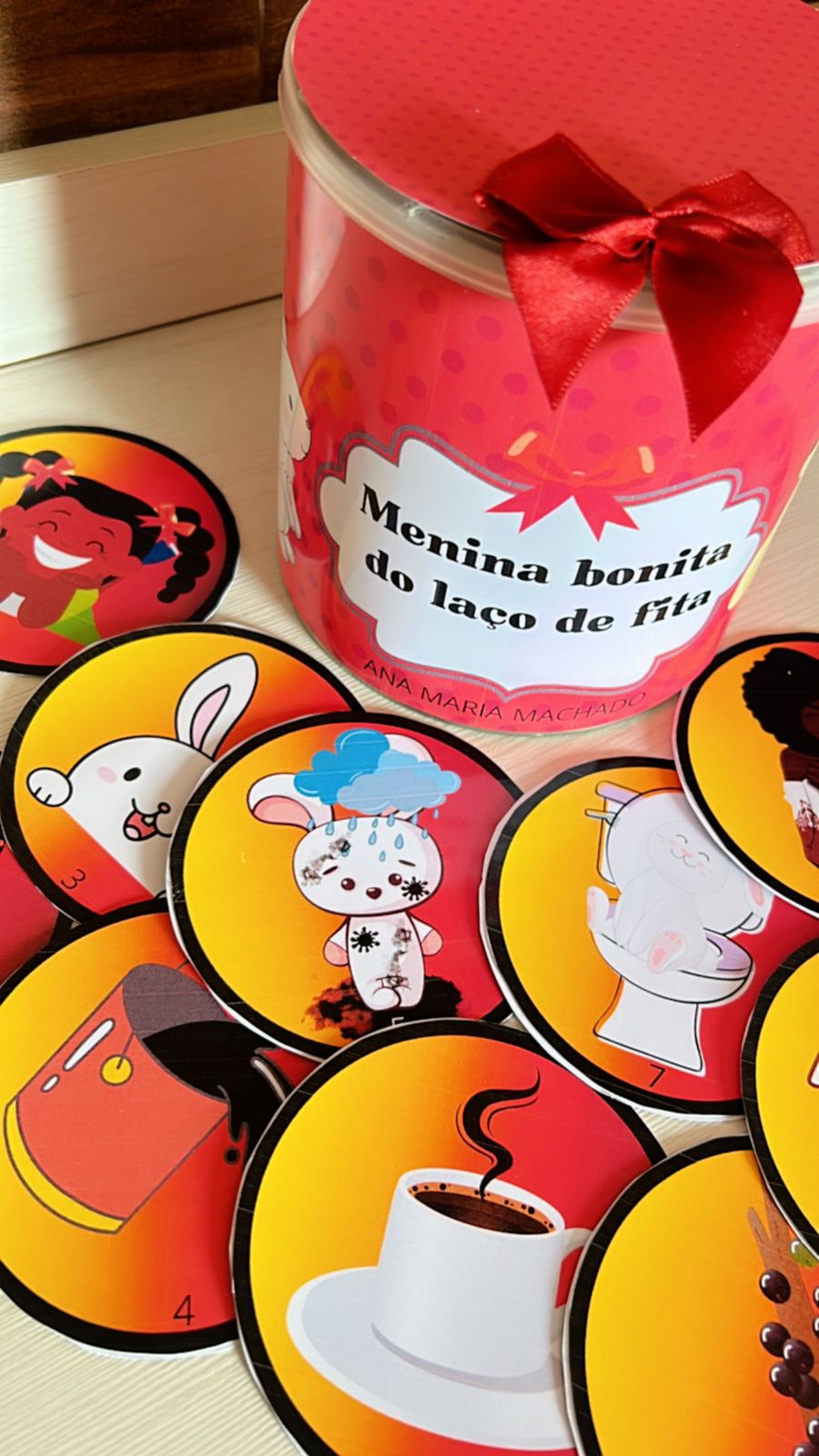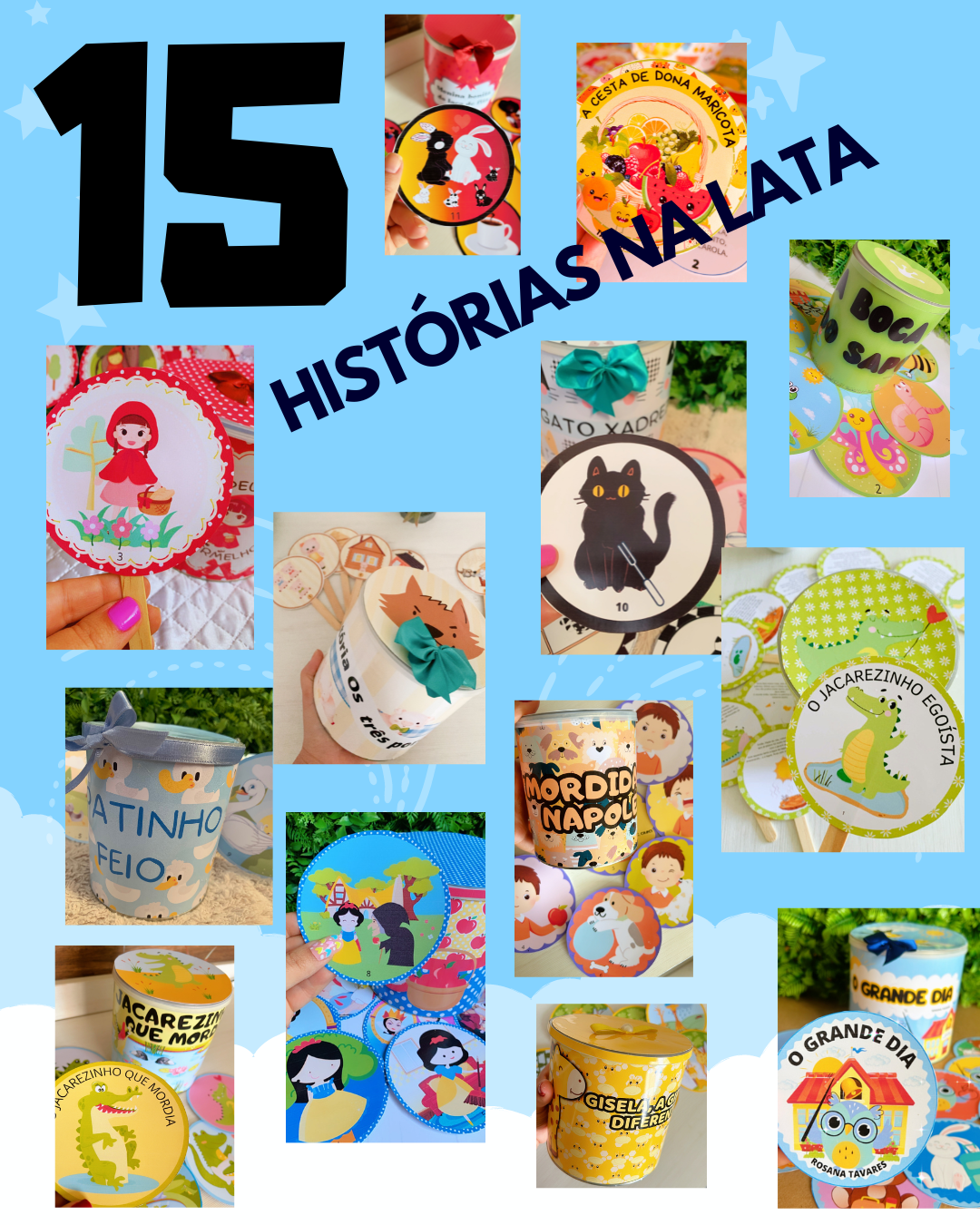 No arquivo vem a arte para a lata de 400 e 800gr, as fichas com as imagens e a história escrita para colar atrás.