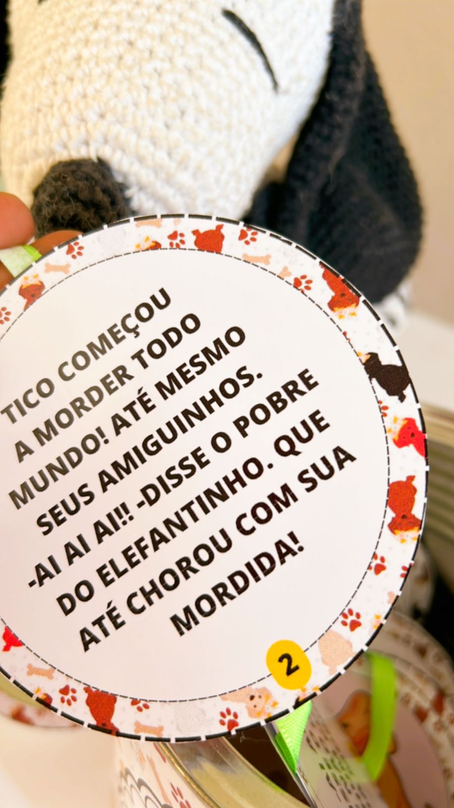 Tico é um cachorrinho que começou a morder todo mundo! Até seus amiguinhos! Sua mamãe fez de tudo pra ele parar, mas nada adiantava! Até que um dia chegou uma amiguinha muito especial que ensinou a ele que beijinhos é muito melhor que mordidas🥰🥰